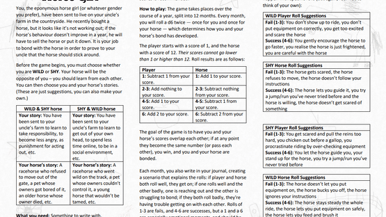 A solo journalling RPG where you are a girl with a horse