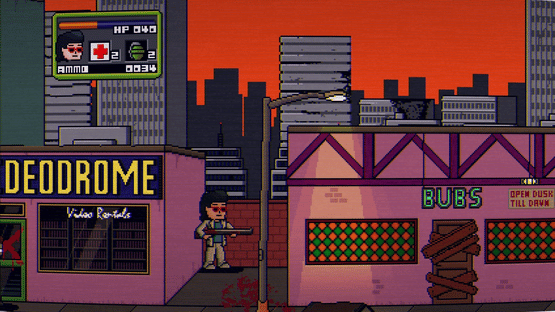 In 1983 the city of New Hexington was destroyed after a chemical spill caused the dead to come back to life. By 1987 the whole of America had succumbed to the T.O.X.I.N. virus. Welcome to 1991. The long awaited follow up to Dead Pixels comes straight to home video with all the new features you could ever want. Dead Pixels II is a side scrolling, randomly generated shooter, with RPG elements, 1-4 player co-op, a VHS filter and a whole city full of shambling corpses.