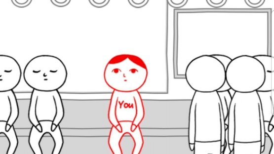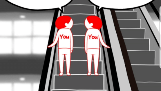 What if you could try out exactly how considerate to be in life? Kuukiyomi is a social puzzle game in which players try out different responses to social situations. These range from everyday moments, like making room for others on the bus or standing to one side on the escalator, to wilder and silly choices like performing in sync as a backup dancer or joining a Japanese superhero team. Each situation is presented as a fast minigame, similar to the WarioWare series, with no real explanation; players are left to themselves to judge what it is they need to do. There are 100 minigames in all, and after finishing every game players are given a personality reading based on their performance in various categories such as "social appropriateness" or "reaction speed". After finishing the game once, players unlock the ability to replay any of the stages individually and an endurance competition with three of the different minigames where players have to see how many times they can complete it in a row.