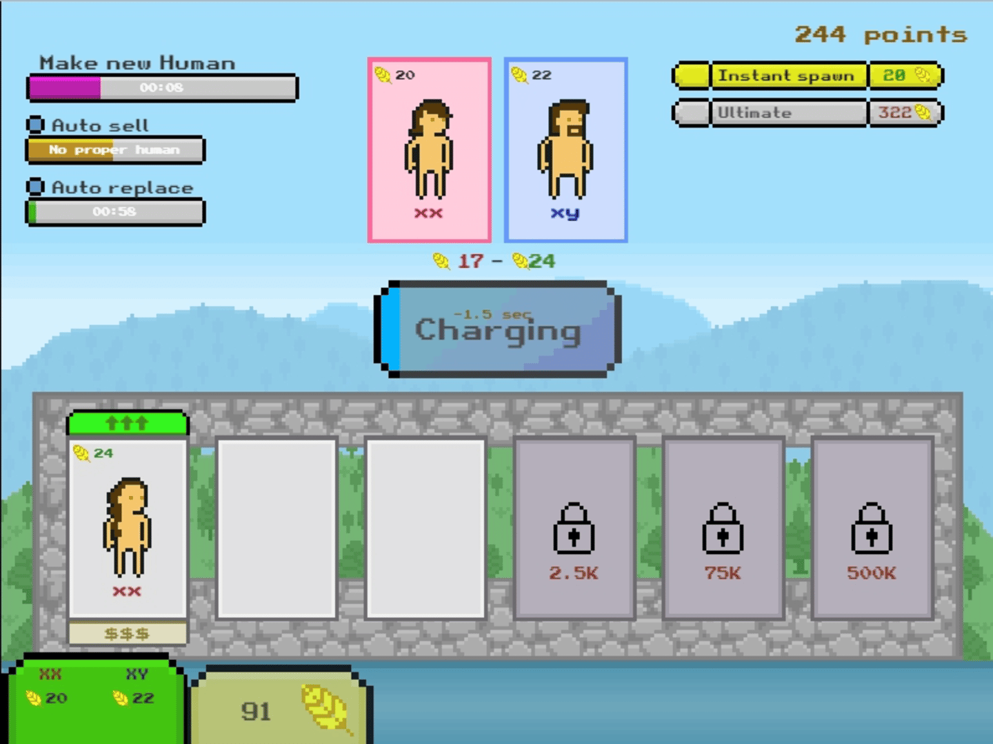 Spawn humans, increase their stats, produce food, spawn faster