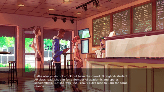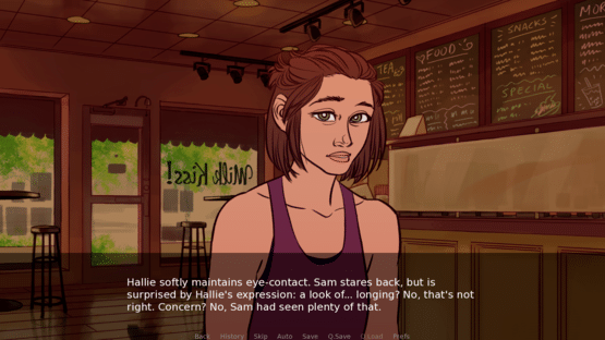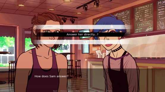 A short story of depression, friends, and crushes. Samantha Fiddler has been depressed for the better part of the last two years of highschool. She's barely scraping by, and nothing makes sense. She wants to go home and sleep. She feels guilty about everything... but for the time being she just needs to hold it together while hanging outside with her best friends. This game was made as a submission for Yuri Game Jam 2017.
