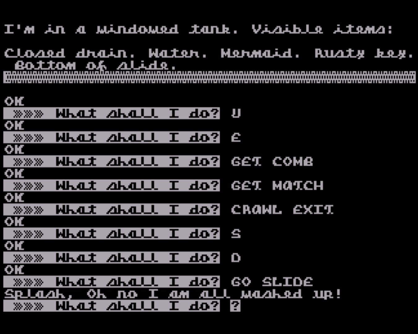 In this text adventure you have to make it through a fun house until the amusement park closes for the day.