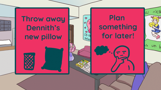 A comedy/satire visual novel starring... pillows?