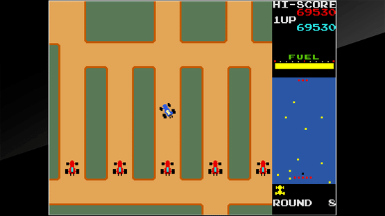 Rally-X is an action game released by Namco in 1980. Players control a car and dodge pursuing red cars while collecting flags. Stall the red cars using a smokescreen when they get too close.