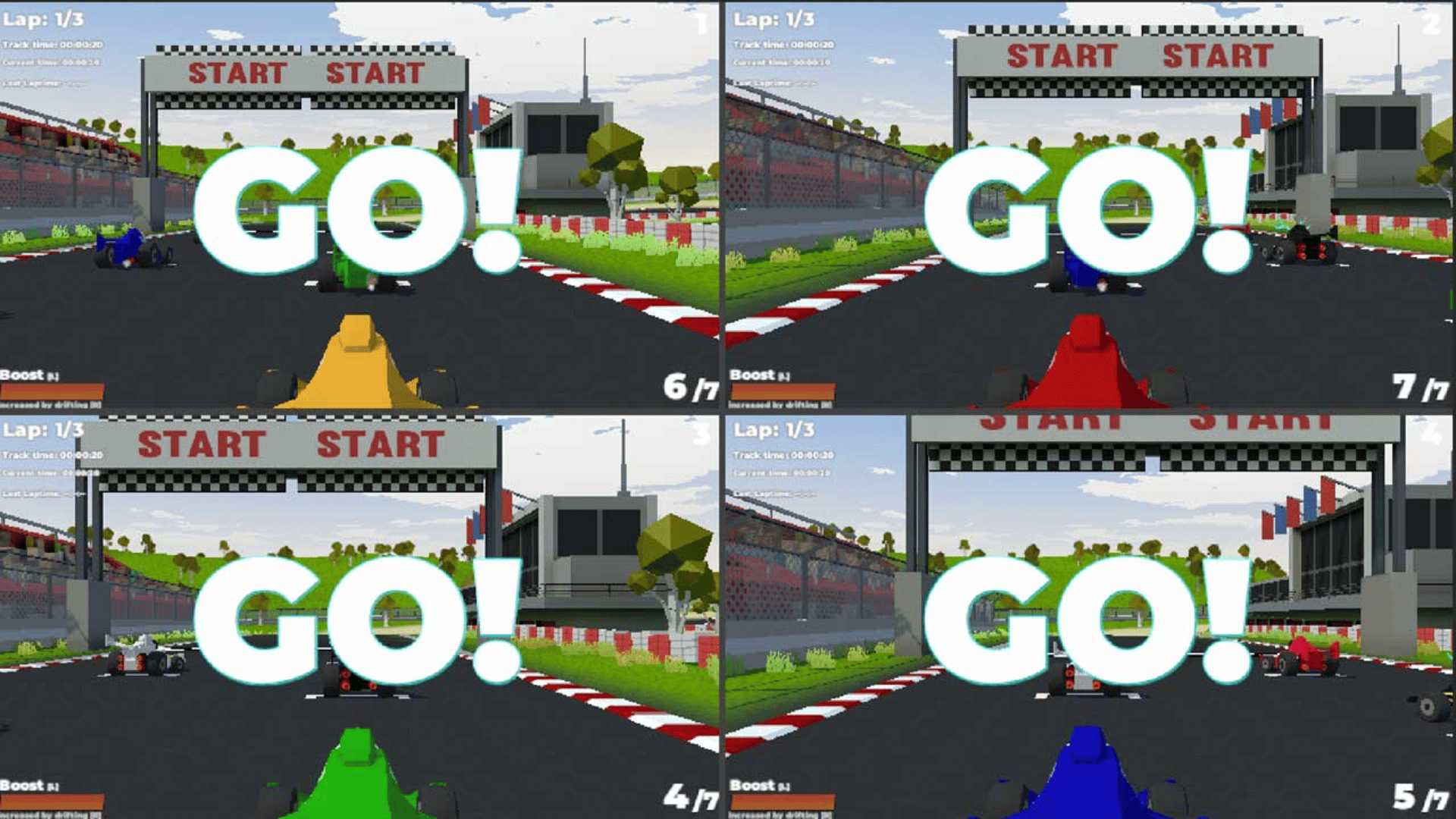To finish first in racing karts you got one simple task ... drift into the corners, scratch the apex, boost out of it and finish first! Easy to learn but hard to master ! Compete in three different game modes namely time trial, arcade mode and championship. Customize your racing kart your way with unlocked parts starting from the pilots helmet, tires, exhaust ,wings and color. Get your couch ready for four player splitscreen arcade racing action and a ton of fun! Compete in breathtaking kart races in different game modes single or multiplayer ! Drift Boost Win thats kart racing!