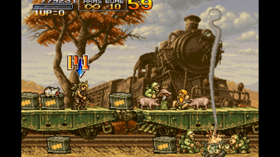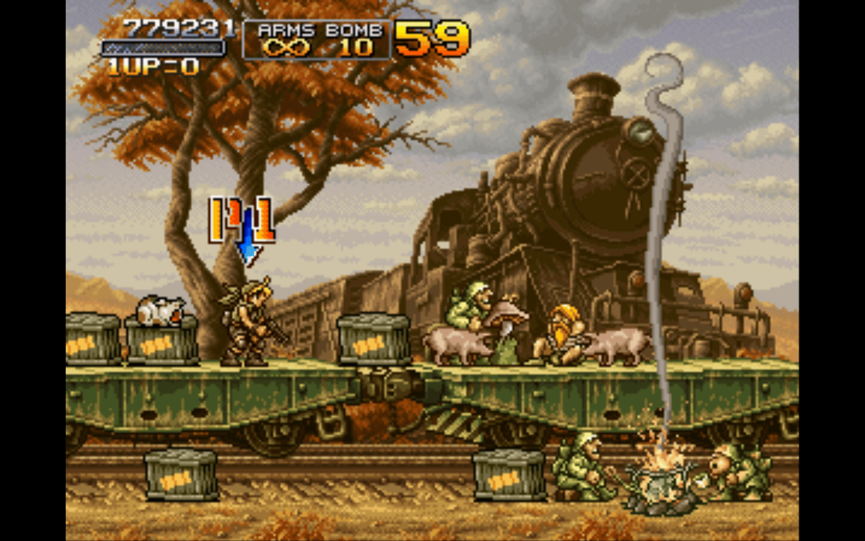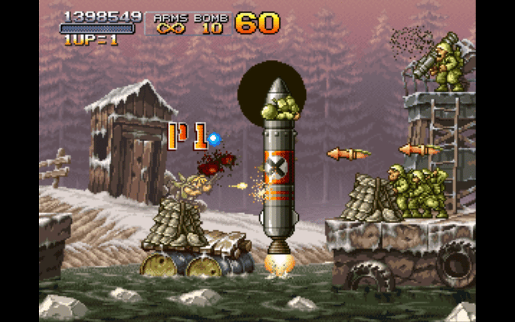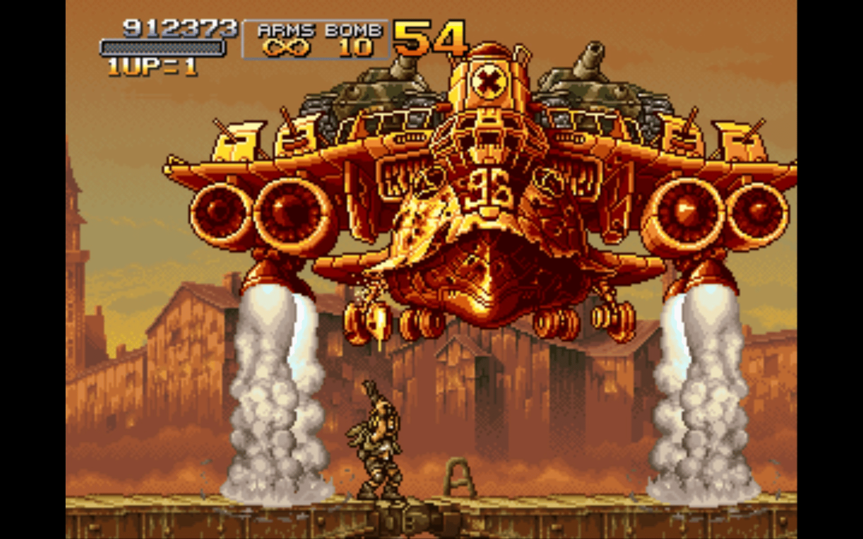 Metal Slug X is upgraded version of Metal Slug 2 (Metal Slug 2: Super Vehicle-001/I), which was released in March 1999 for the Neo Geo MVS. It fixed slowdown problems from the original game, and increased the difficulty. Metal Slug X also introduced some new elements to the game system.