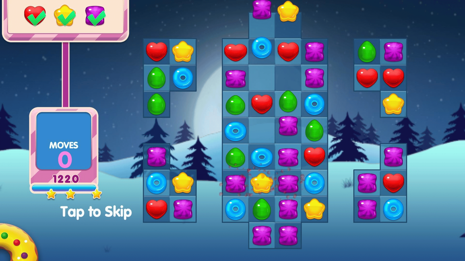 Ice Sugar is a logic game for creating chains of identical elements. The goal of the game is to put in a row from 3 identical elements, get points and go to the next level. 100 levels. 5 musical compositions. Varied bonus.