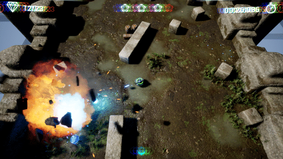 This is an arcade-style inertial skill-shooter with mouse control only.