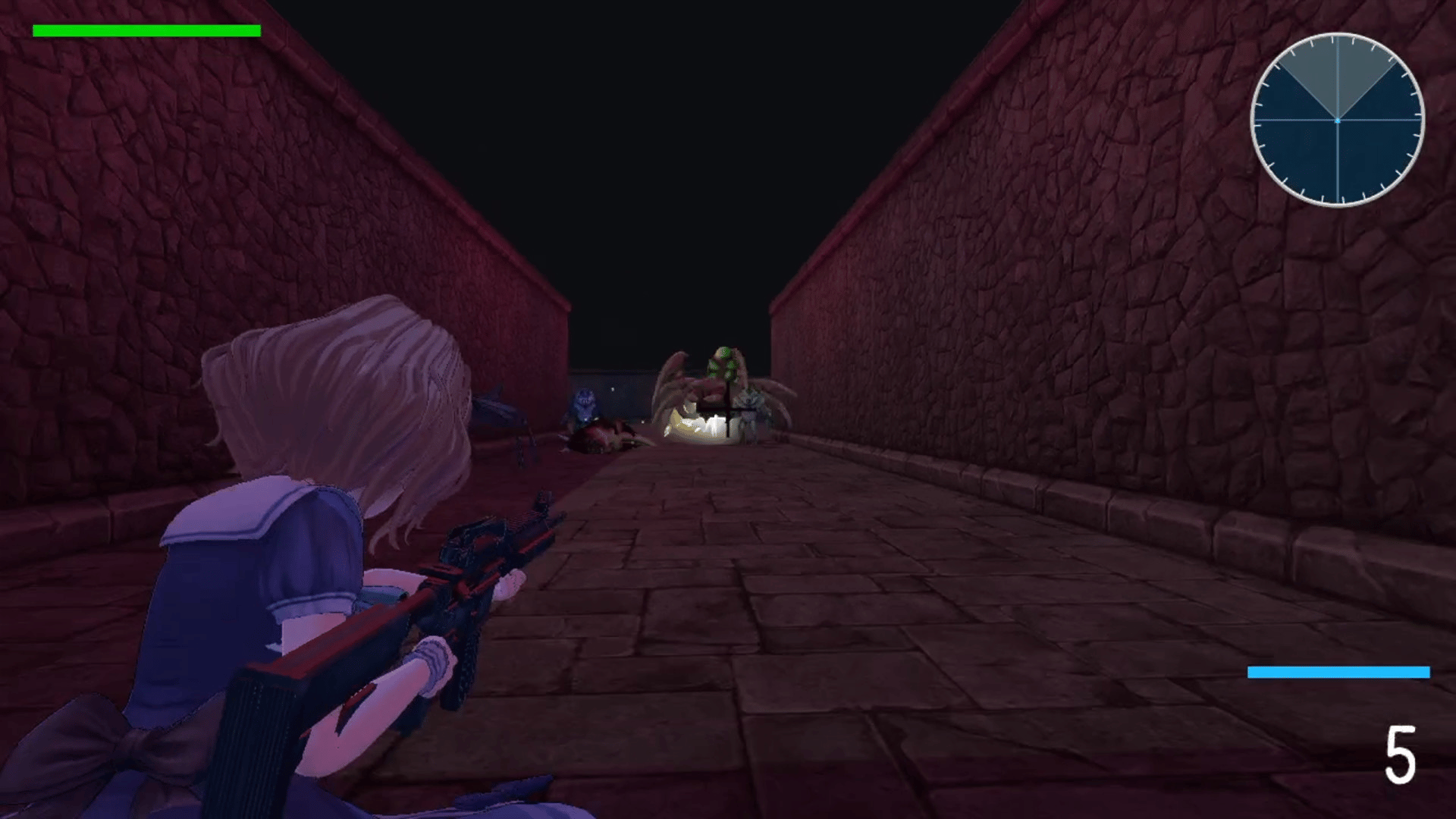 This is an action shooting game where the girl defeats the monsters that come at her.