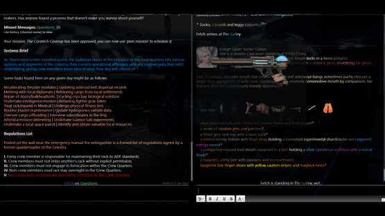 Celestra is a text-based online RPG in which you’ll play one of the crew on a sci-fi ship exploring the galaxy and trying to save their home. Choose from one of seven departments and raise your skills as you embark on missions throughout the cosmos.