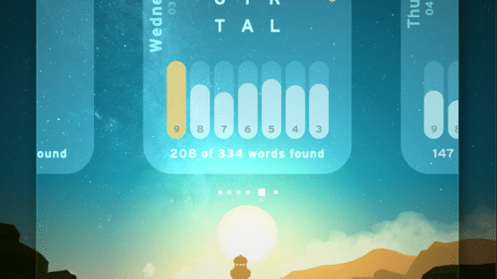Wordsmyth is simple - one new puzzle, every day you play. No timers, no levels and no distracting adverts - just you and todays 9 letters. Focus on them, absorb them and find as many words as you can. There's no pressure, so sit back and take your time. The beautiful, dynamic scenery flows with every interaction, while the mellow soundscapes help draw you deeper into the experience. With over 18 years worth of puzzles, Wordsmyth will provide you with a peaceful, meditative puzzling experience for years to come.
