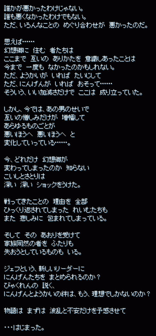 Return of Touhou Mother is a sequel to the indie adventure RPG Touhou Mother. It takes place six months after the events of Touhou Mother and 1 year after the events of EarthBound.