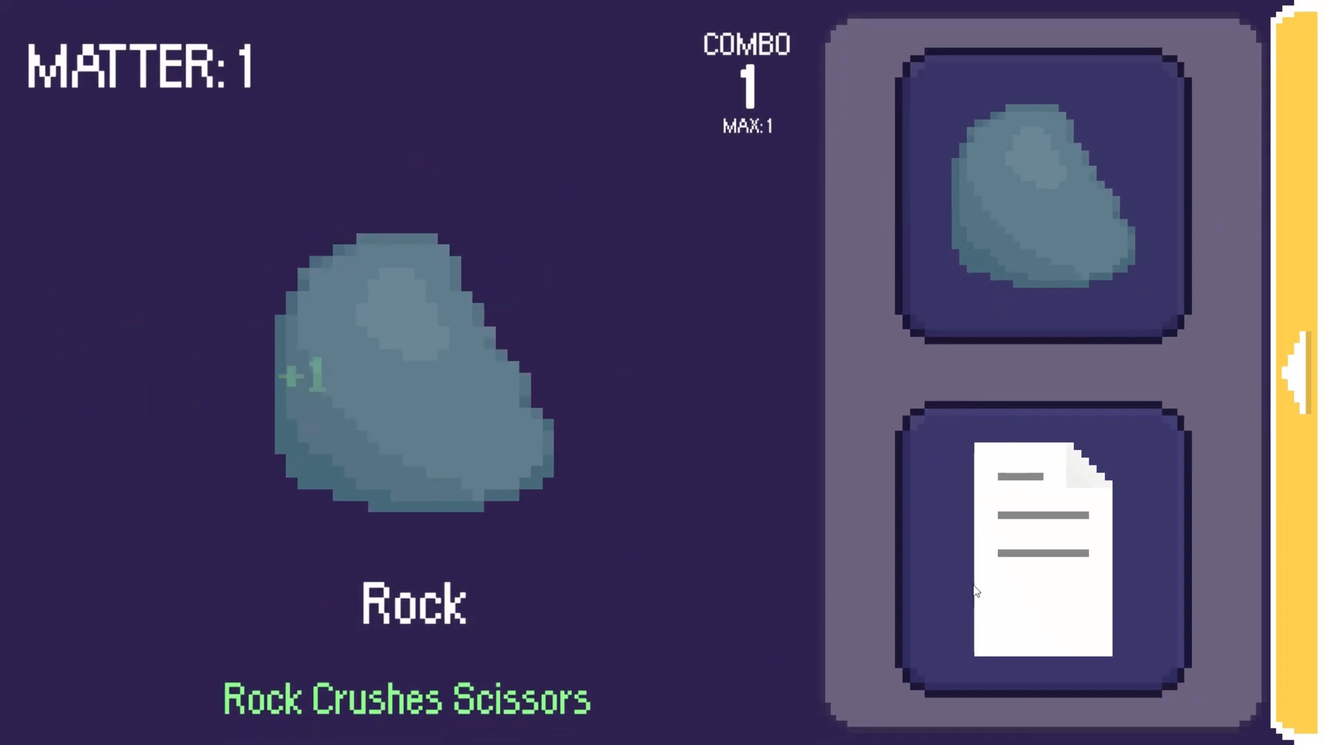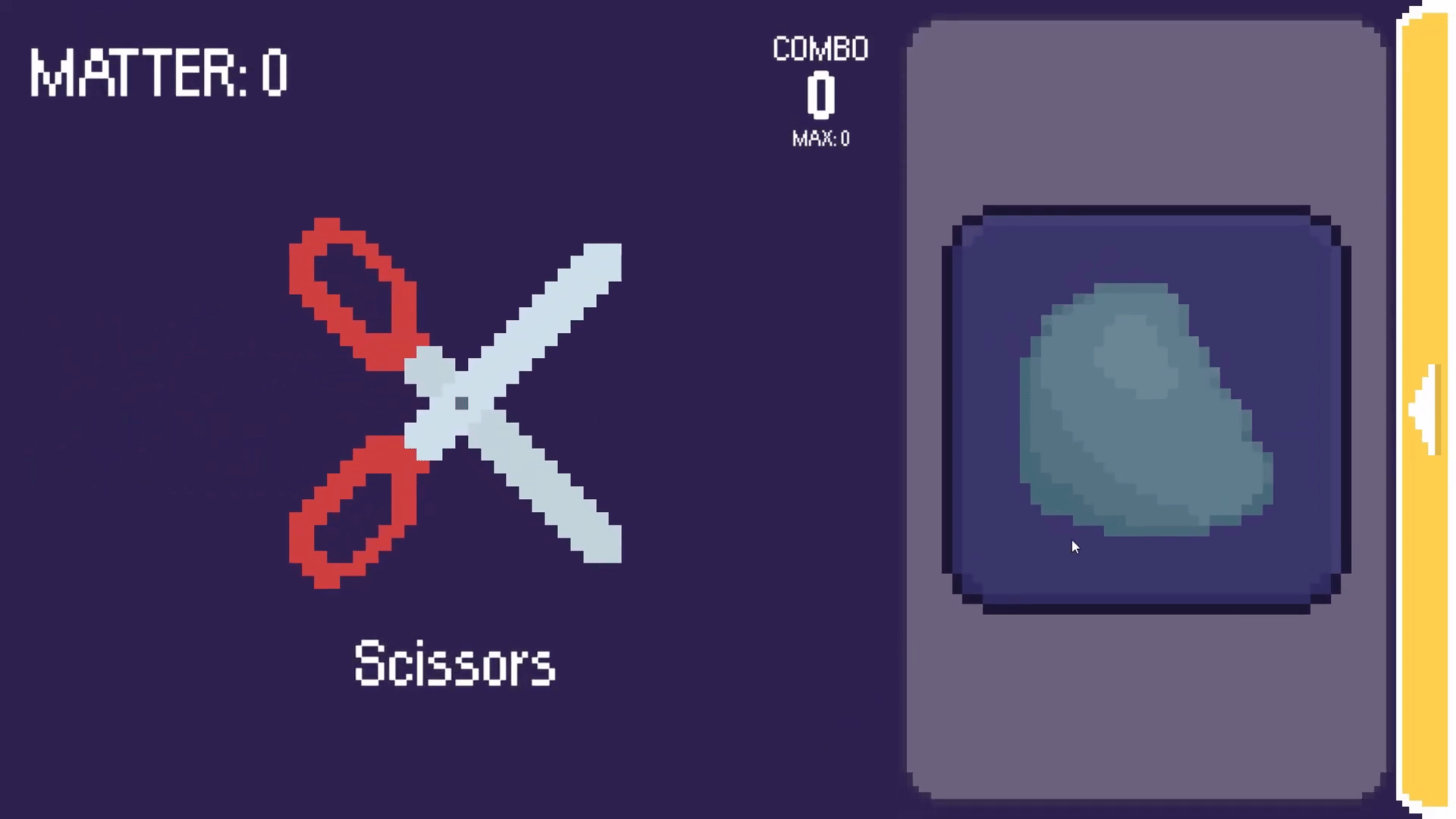 Rock paper scissors as a clicker game where you select (or click) objects that counter the one that is presented.