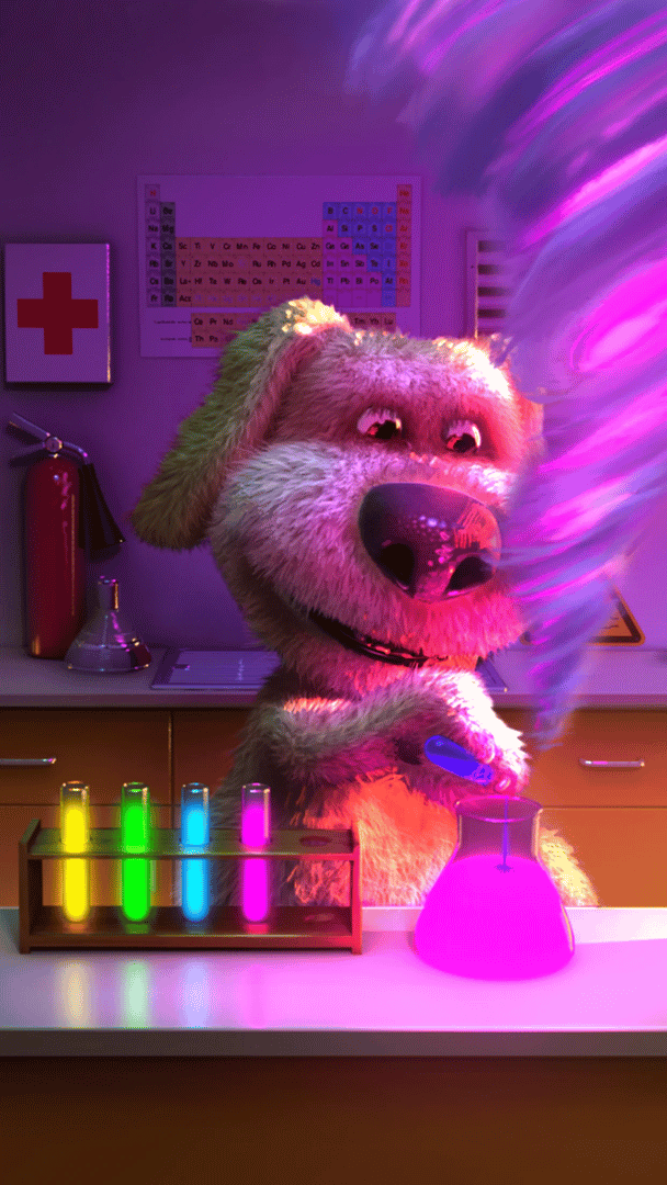 Talking Ben the Dog is a simulator game. To make Ben responsive, you will have to bother him long enough that he will fold his newspaper. Then you can talk to him, poke or tickle him or even have a telephone conversation with him. If you get Ben to his laboratory however, he becomes as happy as a puppy. There you can do chemistry experiments by mixing a combination of two test tubes together and see the hilarious reactions.