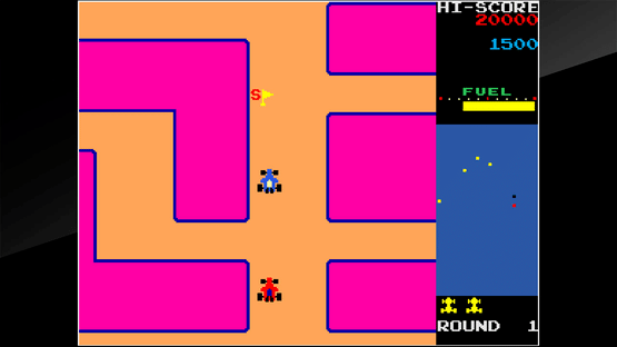 New Rally-X is an action game released in 1981. This work is a full model change from the previous Rally-X. Experience the same thrilling car chases against red cars, now with easier gameplay.