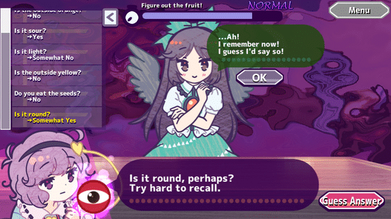 Satori's overworked herself into bed, but Okuu needs help remembering things! You can't use her heart-reading power, and will instead have to ask questions and use her power of recollection to correct wrong info, all while enduring visits from Orin and Koishi as you deduce what Okuu's forgotten!