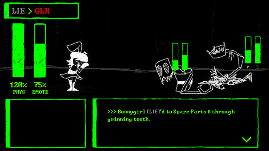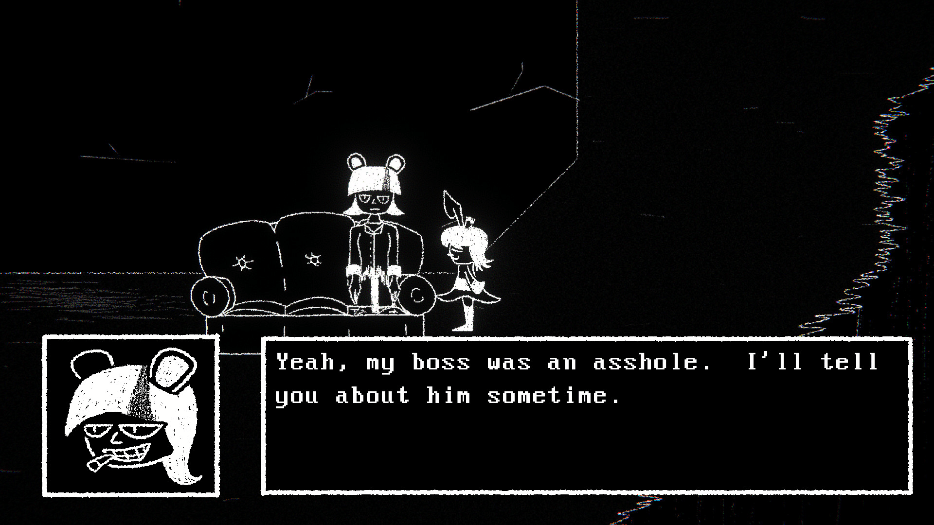 You Are NOT Bunnygirl is an RPG about self-care! Manage Physical and Emotional Health as you guide Bunnygirl through a lab of malfunctioning robots. You can't actually lose, because it's a game, but you should protect Bunnygirl anyways because she might not appreciate it if you don't.
