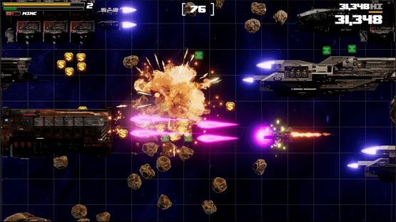 An unknown force in the galaxy is literally eating planets! As it travels through the galaxy, planets in its path begin to panic. A plan to nuke the anomaly goes into action - and it works, but at a cost. As it implodes, it scatters dangerous debris across the galaxy. The Time Blazers are called in for cleanup duty. You'll blast your way through dozens of levels in pulse-pounding arcade action as you fight off a seemingly infinite onslaught of space debris. Use the time warp to slow down your enemies when you become overwhelmed. Upgrade your weapons early and often so that when there are 1,000 asteroids closing in on you - you're ready!
