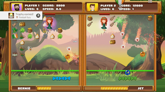 Saint Patricks Day Break 2 Head to Head is a retro arcade game that lets 1 and 2 players play head to head in a competitive arcade environment. Unique animated Saint Patrick’s day themed items tumble down toward the users paddle along with Mini-Bosses and Powerups. Collect powerups as you progress through the levels and defeat your opponent. Thirty Levels to compete in and battle mini bosses on your way to victory in single player and two player modes.