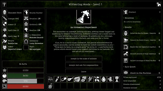 Grim Quest is a classic turn-based RPG / Dungeon Crawler with minimalist aesthetics and a retro vibe. Set in a dark fantasy world with elements of Lovecraftian horror, it puts a lot of emphasis on atmosphere and immersion, with sombre visuals, melancholy music and lots of written text.