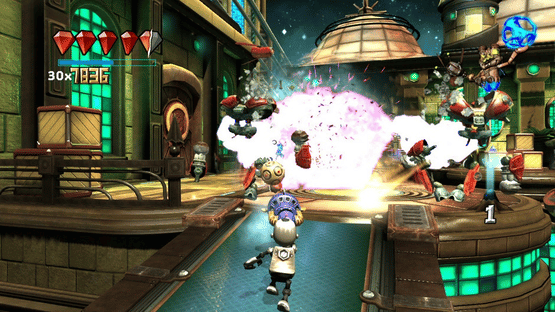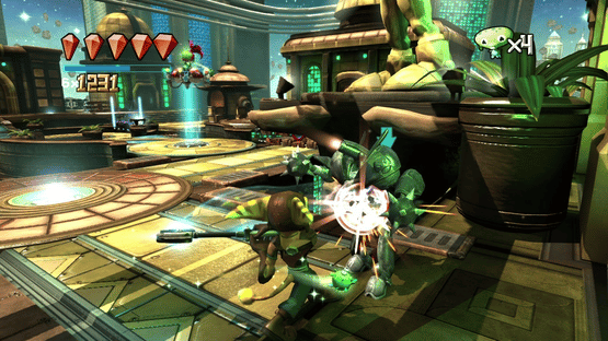 The game offers both single-player and two-player cooperative multiplayer modes as players progress through a series of levels. Featuring six playable characters—Ratchet, Clank, Jak, Daxter, Sly Cooper, and Bentley—the game comprises a total of 50 levels categorized into five "archetypes", five weapon classes, and four environments. These environments include Paris from Sly Cooper & Bentley, Metropolis City on Kerwan from Ratchet & Clank, Haven City from Jak and Daxter, and Planet X, an original game-created environment. Players have the flexibility to choose their character for each level, with each character offering a distinct gameplay style and potential advantages on specific levels. In cooperative play, the second player assumes the role of the first player's sidekick character. For instance, if the first player selects Jak, the second player automatically becomes Daxter. The five weapon classes—Disc, Whip, Bowling, Projectile, and Melee—each bring a unique gameplay element. The Disc is thrown akin to a frisbee, with players controlling its navigation remotely using the Move controller to achieve objectives like hitting moving targets. The Whip is operated via the Move controller with 1-to-1 movement. Bowling functions similarly to the Disc, where players throw a bowling ball and guide it using the Move controller. Projectiles involve various guns and weapons, such as grenade launchers. Melee utilizes each character's distinctive weapons—Sly's cane, Ratchet's wrench, or Jak's gunstaff—to engage enemies in a manner reminiscent of their original games.