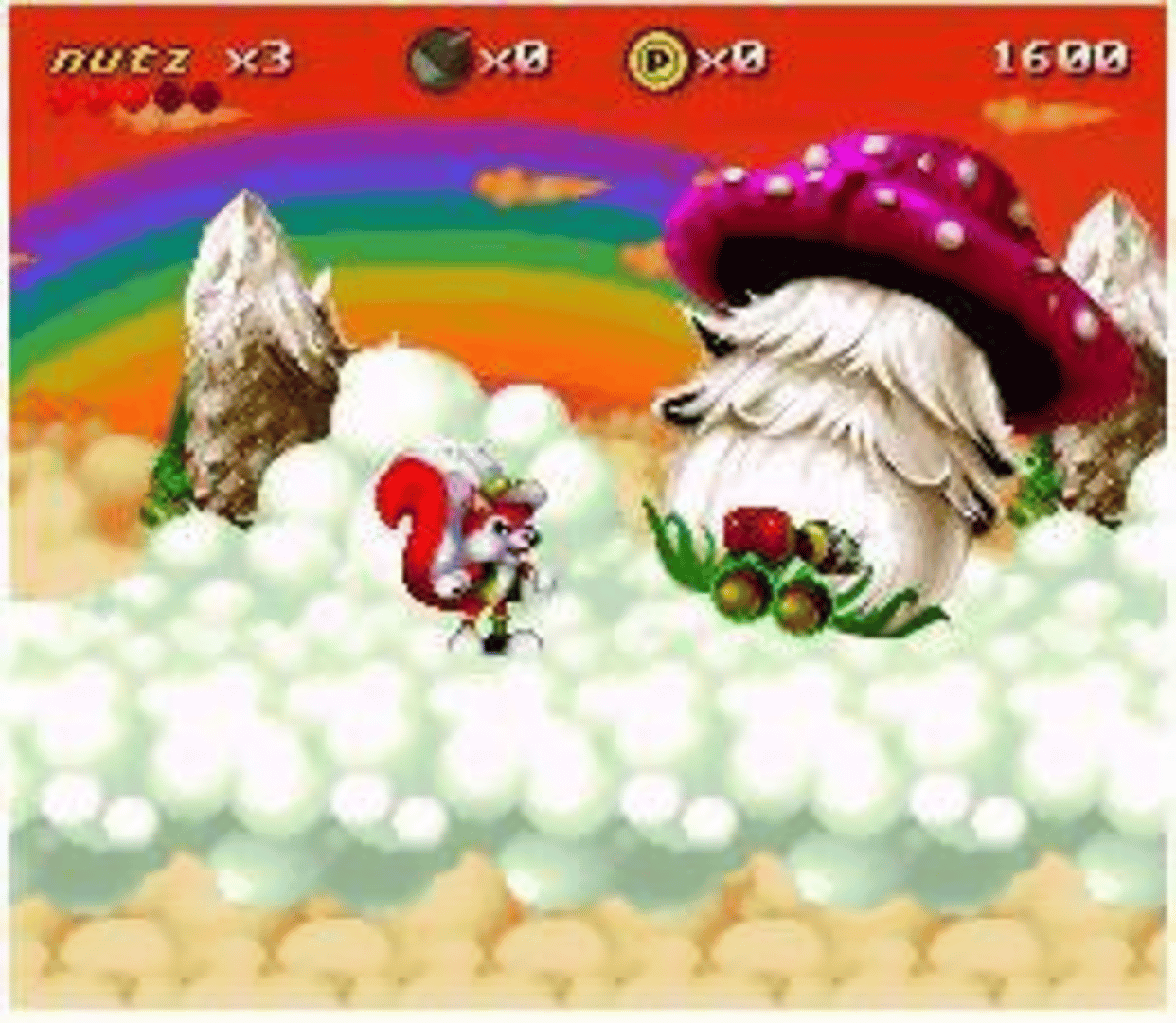You are the cool squirrel of the title, and you must defeat the evil Yeti before he freezes the entire world. Your quest will make you explore many areas such as a forest, a witch's cottage, a volcano, the clouds, a circus... Mr. Nutz is a platform game, in which Nutz must jump on enemies to kill them. His tail can also be controlled. You move through levels using ledges, ladders, bridges and platforms. There are some simple puzzles involving object manipulation.