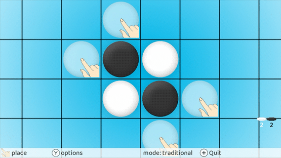 Play Reversi (32 piece style) on the Wii U GamePad against a friend or Bigley.