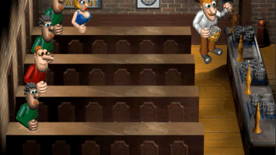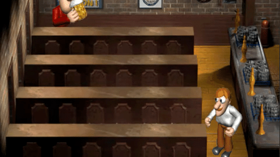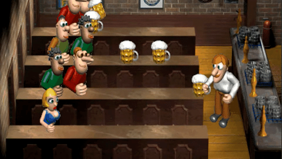 Falcon Beertender is a Swedish freeware game by E-Game and a promotional tie-in with Falcon Brewery. It is a remake of Tapper with the same objective, to serve your customers a mug of beer each. Falcon Beertender enhances the gameplay of Tapper in two ways. First, your customers can sometimes be very thirsty: they will toss back an empty beer mug for you to fill. You'll have to catch those mugs and pass them more beer. Secondly, breaking a (glass) mug also costs you a life, so you must make sure that you're not tossing more beer mugs than necessary, lest they crash into a back wall.