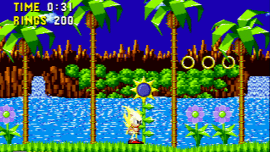 This is a hack which enables a Super Sonic transformation in the original Sonic the Hedgehog for Genesis. Sonic can transform to Super Sonic by double jumping while in the air after acquiring all 6 Chaos Emeralds. There is also a cheat code to transform into Super Sonic without beating any special stages.
