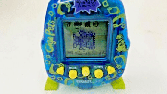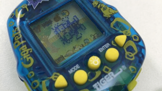 Giga Pets are digital pet toys. Available in a variety of different characters, each Giga Pet is a palm-sized unit with an LCD screen and attached key ring. To ensure a happy, healthy pet, its owner has to take care of it similar to how one might care for a real animal, including feeding, cleaning, and playing with their Giga Pet.