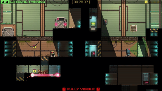 Stealth Inc is a fast-paced stealth platformer featuring brutal hazards, ruthless enemies, fiendish puzzles and red pixels galore. Jump, sneak, and be chunked through 80 levels. Will you make it out alive? Armed with only your wits and a pair of top of the range Stealthing Goggles, it's your job to sneak your way through a deadly facility that's determined to extinguish your fragile little life. With no weapons and no armour, being seen means instant death. Stay out of the light to avoid the attention of deadly security robots! Leap like a lusty salmon to avoid those zap-happy lasers! Think fast as the walls close in around you! And once you've defeated these deadly chambers (or they've defeated you), create your own fiendish death-rooms in Stealth Inc's fully-featured level editor!