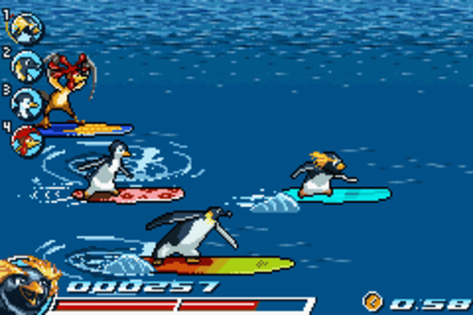 When the Surf's Up, Cody Maverick comes running to hit the tubes with his board. Based on the 2007 film, Surf's Up follows the story of a young penguin surfer from Shiverpool Antarctica who enters the Big Z Memorial Surf Off on the island of Pen Gu. Single gamers may select from ten playable characters and then work their way through several environments including Shiverpool, Pen Gu, and the volcanic area. With friends, players may compete in a variety of competitions with such characters as Tank, Big Z, and Cody.