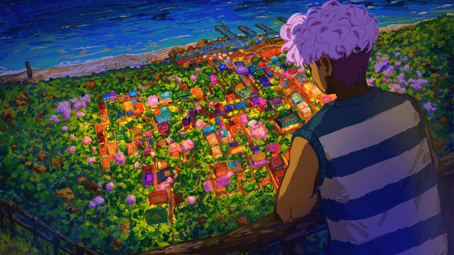 a slice of life game where you live a peaceful day in a whimsical hand-painted coastal town