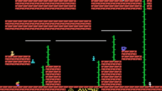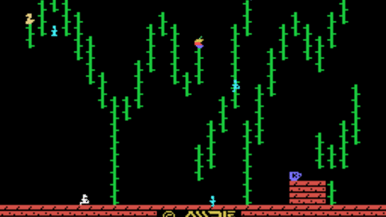 Boogie Woogi Jungle is an action game, where your character must collect a number of objects scattered around each screen before the timer runs out. Most of the objects are on ledges, requiring climbing up ladders and across rope bridges. Other characters are also running around the screen, and must be avoided to prevent losing a life. Graphically and game-play wise, it is very similar to Lode Runner, except that instead of digging holes to temporarily trap your pursuers, you can fire either horizontally or vertically to stun them.