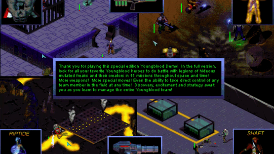 Youngblood: Search and Destroy is an isometric action game that was originally scheduled for being published for PC and Sony PlayStation in November 1997. However, the PC version has been postponed to May 1998 while the PlayStation version was pushed back to an undisclosed date.