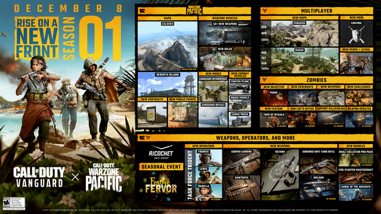 Prepare to rise on a new front – Vanguard heats up in the Pacific with a new Battle Pass and new weapons, Operators, maps, and more. Plus, all Vanguard owners get 24 hours of exclusive access to Call of Duty: Warzone Pacific’s new map, Caldera.