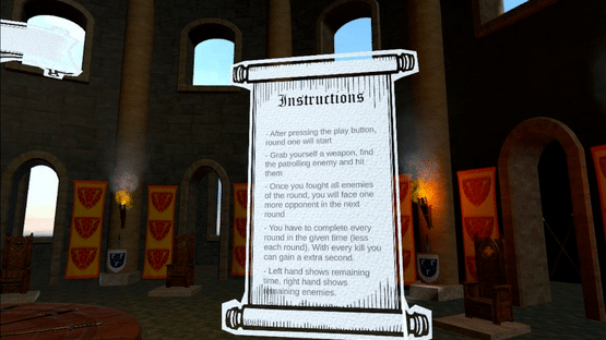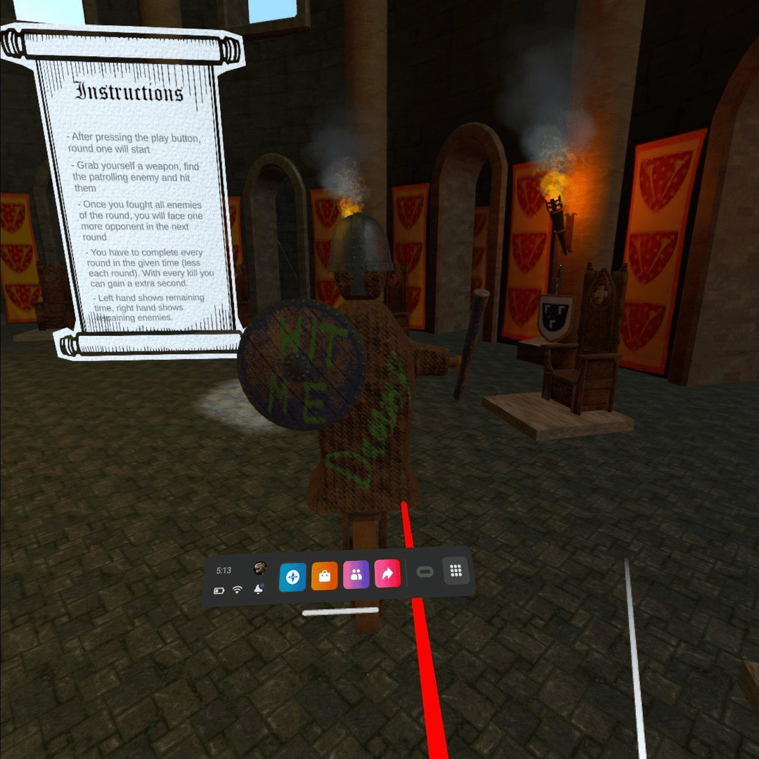 Round Table is a fun virtual reality action game for everyone! You are a knight of King Arthur's Round Table practicing swordplay. The wizard Merlin has conjured up a training course for you in King Arthur's throne room. Grab a sword and get to it. How many rounds of Merlin's parcour can you do?