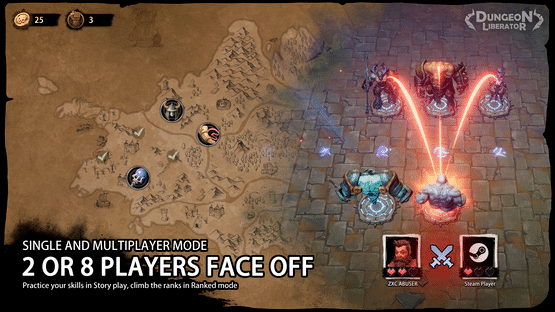 Dungeon Liberator is a game where eight or two players face off in 1v1 rounds, with the goal to be the last player standing. Players need to compete with opponents for Minions and attack orders. Reaction speed will become as important as tactical ability.