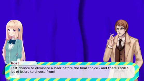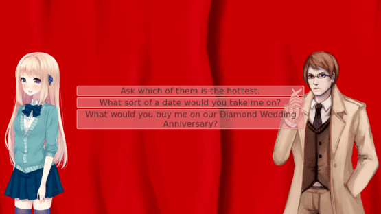 A send-up of dating shows and anime tropes, about 20 minutes per playthrough. Multiple choices - ooh! But only 1 true ending! May contain a rude word or two, and a lot of innuendo. But apart from that it's innocent enough