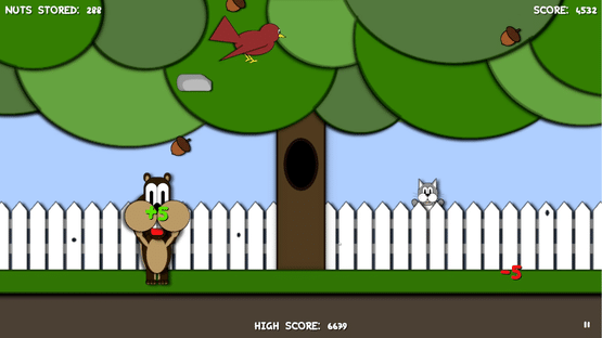 Dee is a squirrel, who lives in a tree. Like any squirrel, Dee must collect nuts for the winter. Dee needs your help to collect as many nuts as possible and store them in the tree. Along the way, you will have to dodge threats from above and collect power-ups to aid you.