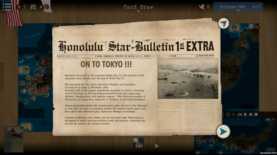 Project Manhattan failed! Operation Downfall, the Allied plan for the invasion of the Japanese home islands is set in motion. Start with Operation Olympic to capture Kyushu, and move on with Coronet, the landing near Tokyo. Force Japan surrender with the largest amphibious operation in history.
