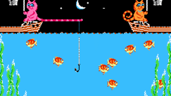 Kitty's Catch is a cancelled NES game created by GameTek employee David Wiebenson in his spare time. Wiebenson pitched Kitty's Catch to several publishers, all of which refused to publish the game. Eventually, several prototypes were discovered and purchased in a lot by the Nolan brothers, who released the most complete ROM to the public. Kitty's Catch is a two-player game where players control cats named Pitter and Patter, and have to catch fish with their tails. The first player to fill their bucket with fish gets a shell, and the player with the most shells at the end of the time limit wins. There are also several power-ups obtained by collecting tin cans, such as larger hooks.