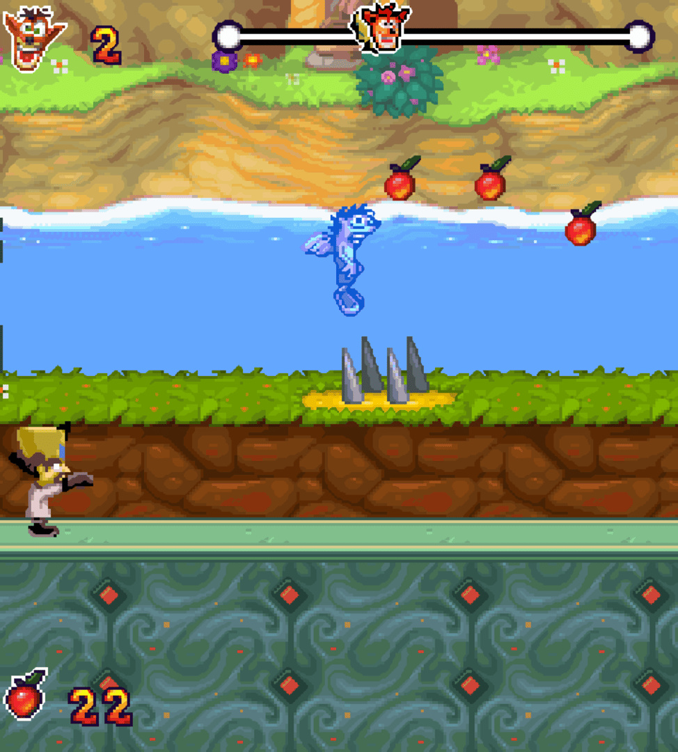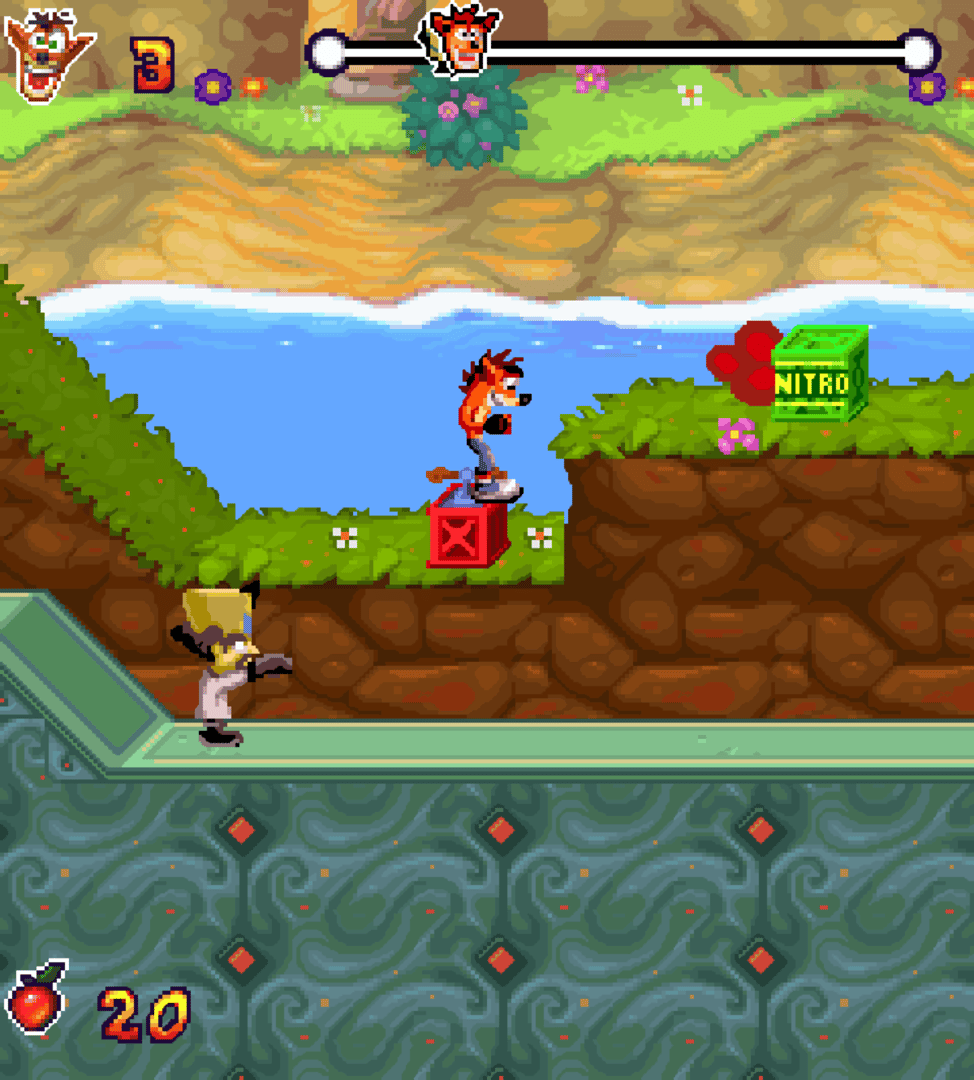 Crash Twinsanity is a mobile game based on the console game of the same name. The game shares the same story of the console version, with Crash and Dr Neo Cortex teaming up to save the world from the Evil Twins. The gameplay is centred around the sections of the original game where Crash has to protect Cortex from hazards by jumping on switches before Cortex collides with the hazard. The game includes 6 levels.