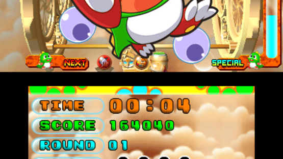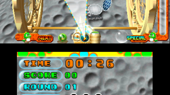 Bust-A-Move (also known as Puzzle Bobble) is a real-time puzzle game in which the player controls a device called "pointer" at the bottom of the screen, aiming and releasing randomly colored bubbles upwards. Depending on the aiming, the bubbles may float up directly or bounce off the walls, changing their trajectory. The goal is to aim the bubbles in such a way that they will touch identically colored ones. When such bubbles form a group of three or more, they pop and disappear from the screen.