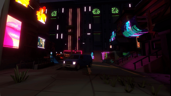 CyVeRpunk is a fast-paced VR on-rail shooter where the player works for the mob in a futuristic cyberpunk-themed city. No motion sickness.