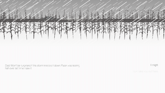 Three Fourths Home is a visual short story in which you assume the role of Kelly during her drive through the storm. In the 20 miles between her grandparents' crumbling barn and her parents' home, she receives a phone call from her mother. While driving through a stylized representation of rural Nebraska, you must navigate an extended conversation between Kelly and her parents and younger brother. Three Fourths Home takes a look into a specific moment of these characters' lives and their relationships with one another. The narrative touches on a variety of issues affecting Kelly and her family, including disability, adulthood, and familial obligation. As a visual short story, dialogue choice is the primary focus of Three Fourths Home. Between the main game and the epilogue, nearly 800 unique dialogue choices shade the story differently based on how you play. In addition to dialogue choice, you must also keep driving in order to keep the conversation going. Stop, and time slows to a crawl. Kelly has to move forward in order to get home. Three Fourths Home: Extended Edition includes an expanded edit of the initial release as well as several new elements, including a new epilogue in addition to a number of extra features.