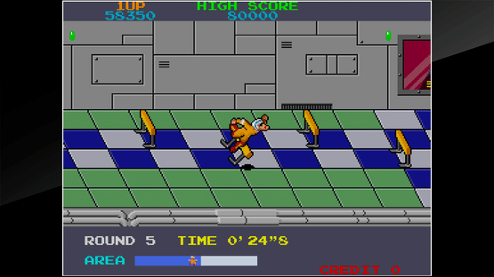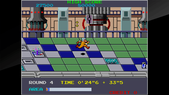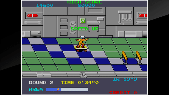 "Metro-Cross" is an action game released by NAMCO (Bandai Namco Entertainment Inc.) in 1985. Avoid obstacles and slip zones, and make full use of skateboards and springboard to reach the goal in time.