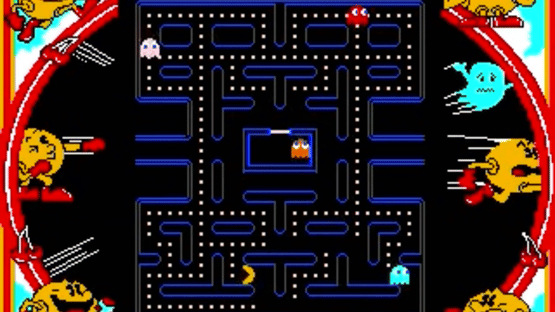 The Namco Museum port of Pac-Man. This version of the game, introduced in Namco Museum Volume 1 (1995), is notable for being perhaps the most frequently rereleased "official" version of Pac-Man from 1995 to 2005. This version of the game often featured a border based on the classic Puckman artwork surrounding it. Being based off the original's source code, it is mostly faithful to the arcade version, but a few things were altered in gameplay: Pinky always aims exactly four spaces in front of Pac-Man when in chase mode (in the original, this became four spaces up and four spaces to the left when Pac-Man was facing up, due to a glitch). Inky's behavior has been considerably altered; he exclusively aims for Blinky's position in chase mode. The ghosts' eyes will not travel up through the one-way paths when returning to regenerate. When a ghost is sent back to the Ghost Home to regenerate, they will always come back out instantly, even if Pac-Man lost a life on the current round. (Incidentally, this fixes a glitch that can occur in the original where Pac-Man can trap Pinky, Inky, and Clyde in the Ghost Home.). Ghosts will exit the Ghost Home to the right if their target position happens to be there. In the original game, they will only exit to the right if the behavior mode (i.e. scatter, chase, frightened) changes while they are in the Ghost Home. If a bonus fruit appears and Pac-Man eats a ghost, the timer that controls how long the fruit stays onscreen halts with everything else. This makes it impossible for fruit to disappear while Pac-Man is eating a ghost.