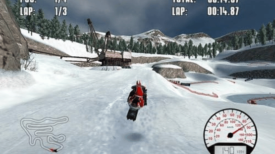 Ski-Doo Snow X Racing is a snowmobile racing game featuring authentic Ski-Doo machines across 18 tracks in Canada, Russia, Sweden, and the USA. Perform trick moves to earn speed boosts, customize your snowmobile with parts and decals, and compete in career mode or multiplayer races against friends.