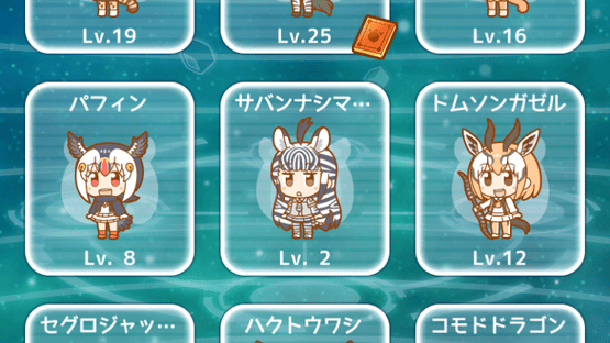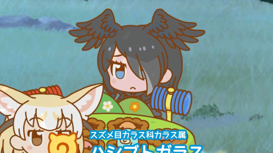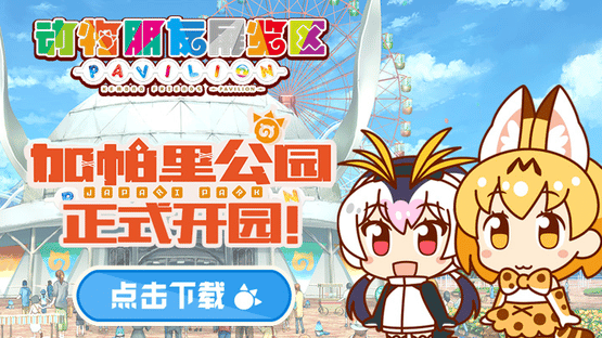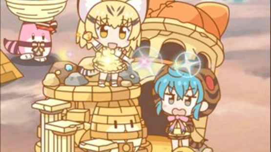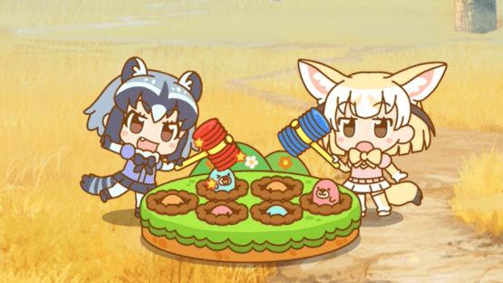 This game puts a Kemono Friends spin on Neko Atsume. Players leave out toys and Japari Buns to attract Friends. The player doesn't directly interact with the Friends when they visit, but can watch them while they play and receive gifts of Pikapika crystals when they leave. Crystals can be spent on new toys or fancier Japari Buns. In addition, the player can complete various challenges by observing special events in-game; witnessing these requires the player to attract particular combinations of Friends to the park at once.